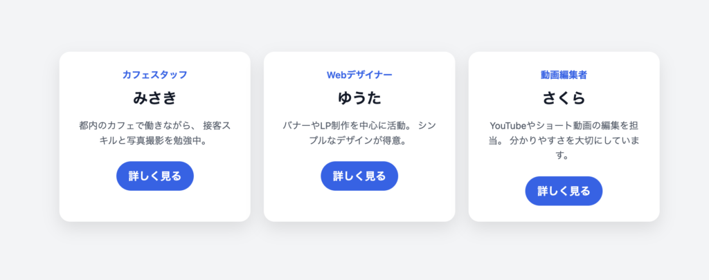 3人分を横に並べつつ、画面が狭いときは縦に並ぶようにしています。(前回のものに上書きでOKです)