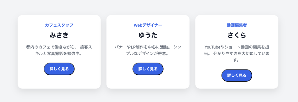 「ボタンを押すとプロフィールの詳細が表示/非表示になる」