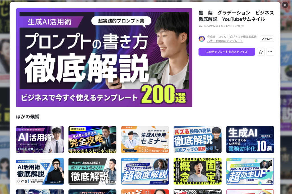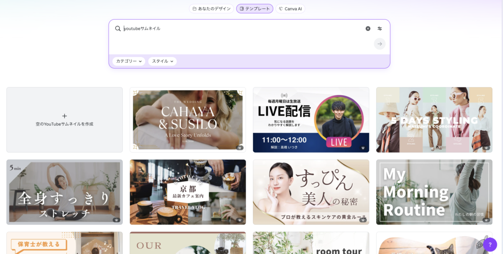 STEP2|CanvaでYouTubeサムネを選ぶ(3分)